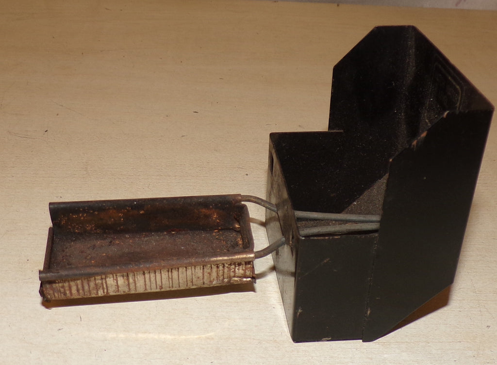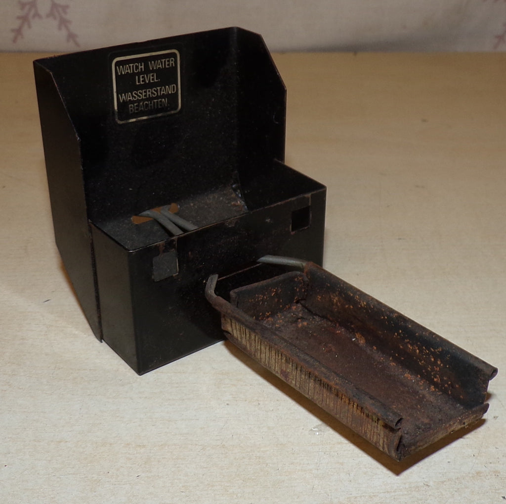 Theres the usual paint loss and rusting, the removable body has been painted in the inside of the buck, its circa 1978 changeover model so has the sight glass firebox and level plug boiler, this was Mamod using up parts and is not unusual, the safety valve and whistle unscrew and tighten as they should do.