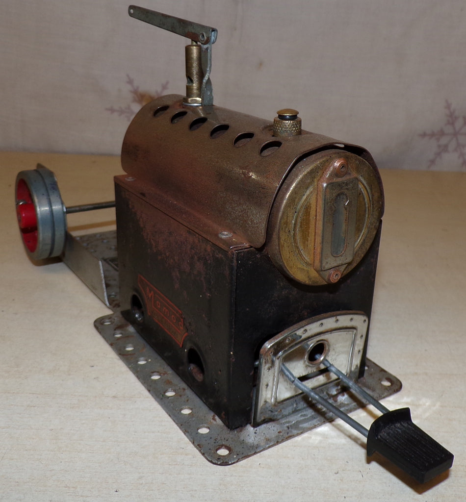 SP3 Live Steam stationary engine dates from around 1979 era, this was the last incarnation of the well known MEC1 that was known for having the yellow Meccano style base, the SP3 differs from having a whistle instead of the little steam dome, silver base, sight glass and solid fuel burner.