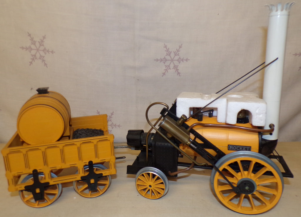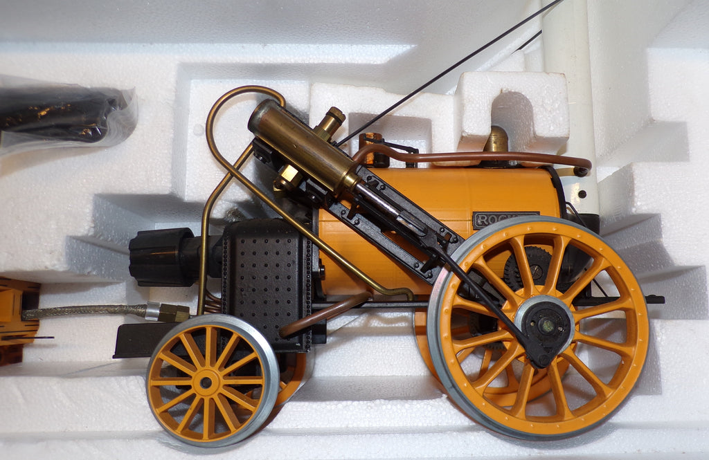 This is a G100 Live Steam Stephensons Rocket, comprising Engine and Tender along with 96 pieces of track which go togther to make up 25 feet, and is 3 & 1/2" Gauge.