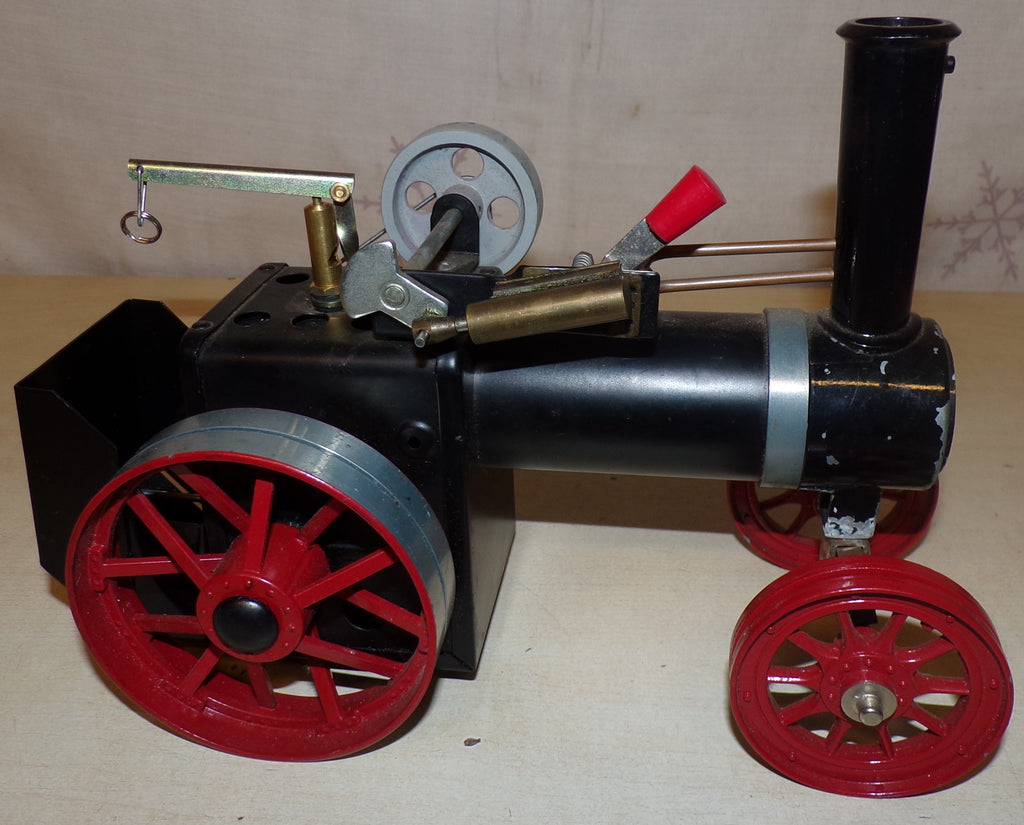 This is a Mamod traction engine, but has SA1 car type front wheels and flywheel, it was missing the whistle so we have added one of those as well as a new burner tray and scuttle, This one is totally unfired and yes there is paint loss as can be seen in the photos but a chance to own something a bit different.