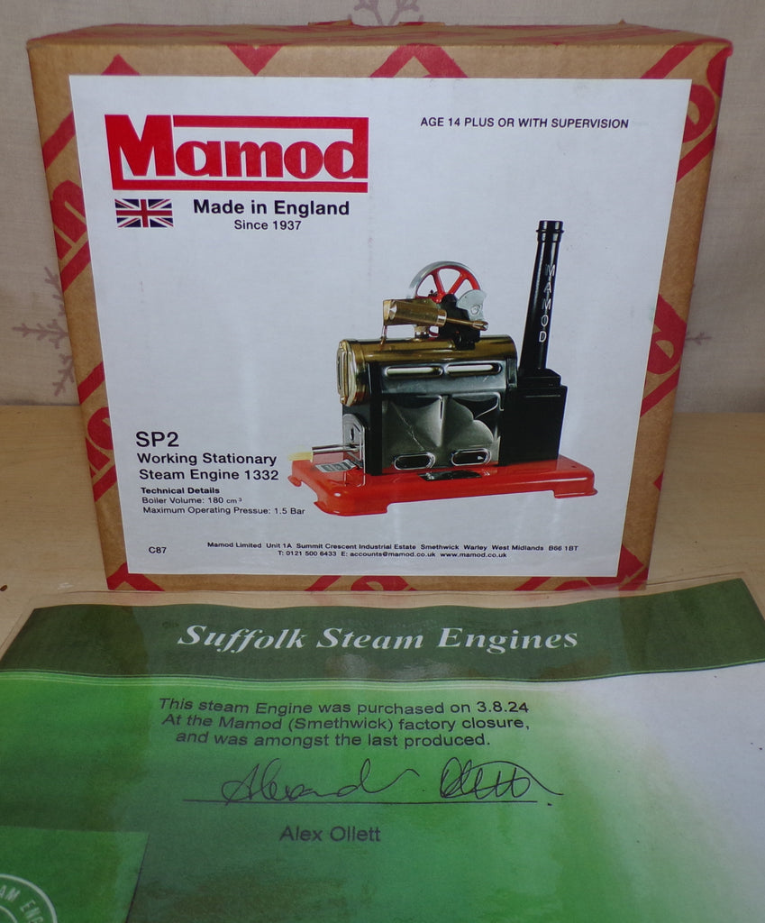 We visited for the factory tour and did buy a few of the built Mamod models that were still available, there will be a certificate from us to confirm this as shown in picture, this is the only one of these we have left so don't miss it.